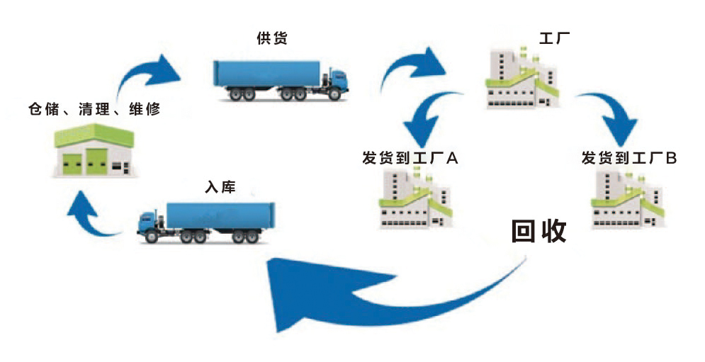 针对目前市场上存在的生产及仓储中用于国内、国际运输周转的单元器具需求,我们提供动态租赁服务。我们为客户设立单元器具专用账户,并提供专业化服务及IT技术支持。客户可按照单元器具使用的实际需求,从我们这用相应单元器具直接发货给其他工厂,我们提供整个流程中的监督、维护和回收服务,让原本复杂的工业物流供应系统变得简单、可循环,确保客户无后顾之忧。